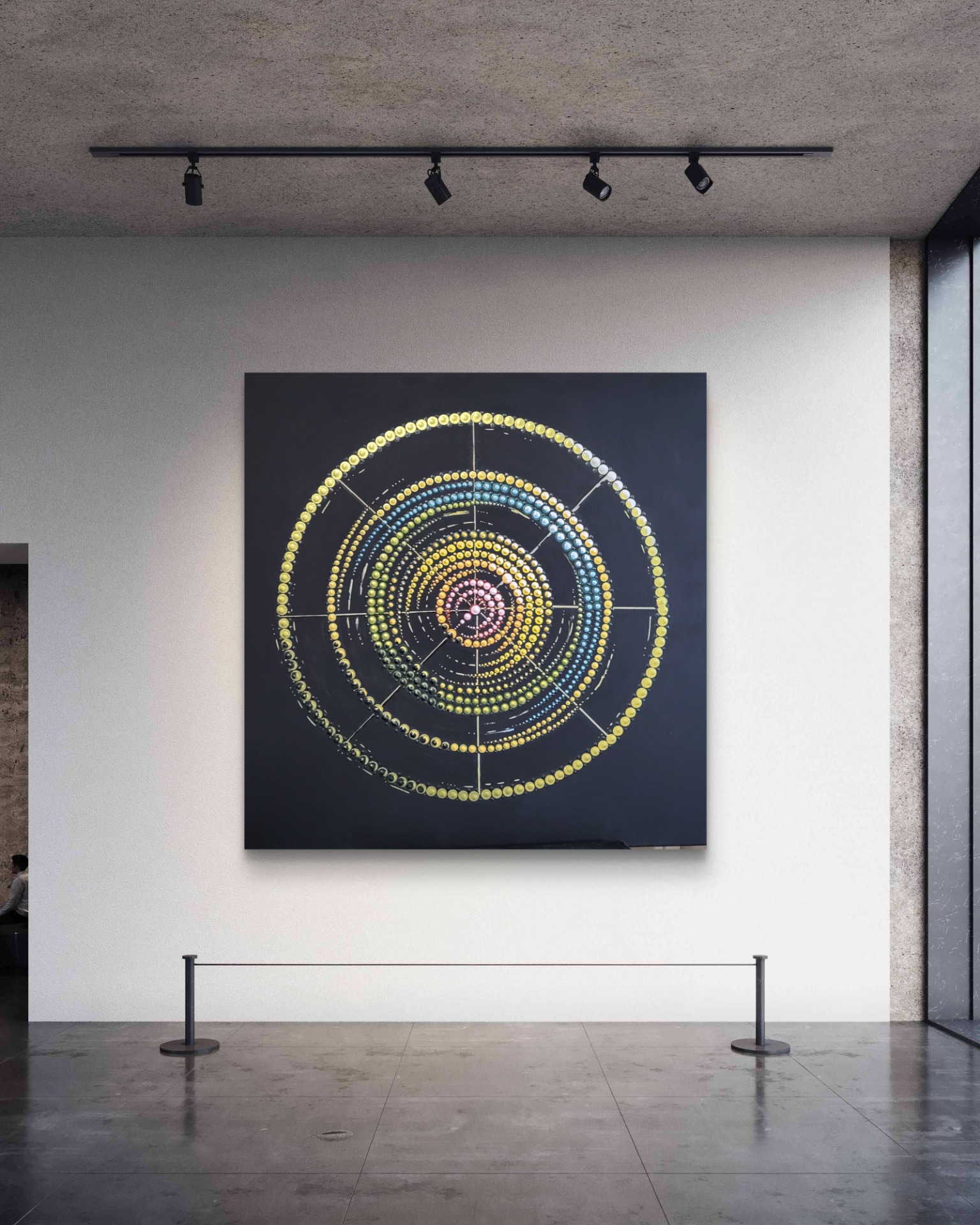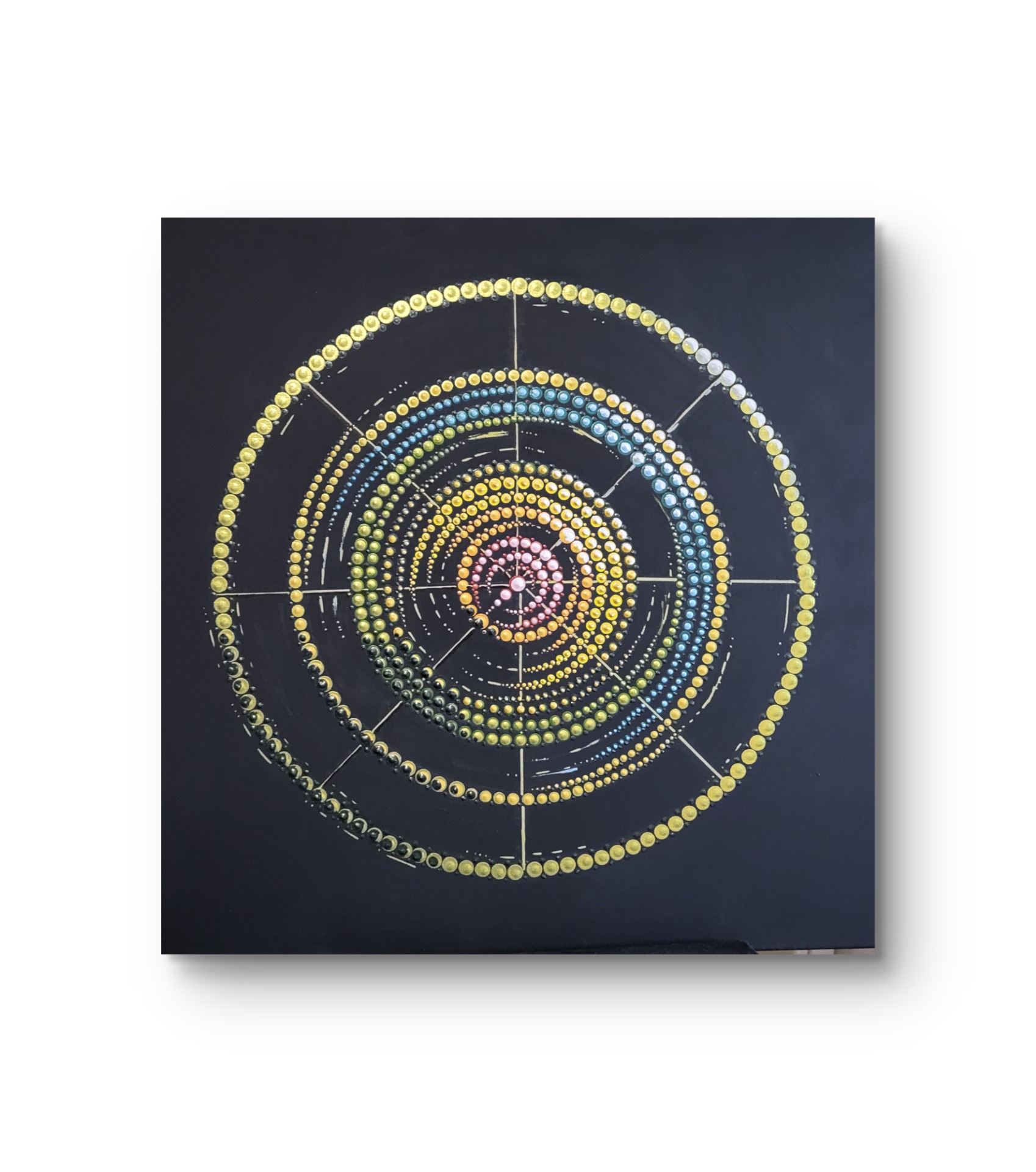 Technika: acrylic metallic festék, feszített vászon, fényes gloss lakk